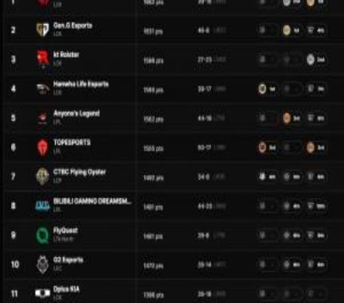 体育资讯12月31日称 lolesports官网的全球战队实力排行榜显示,今年排行前五的...