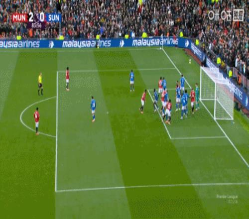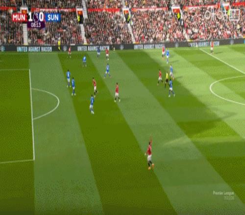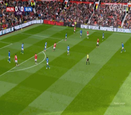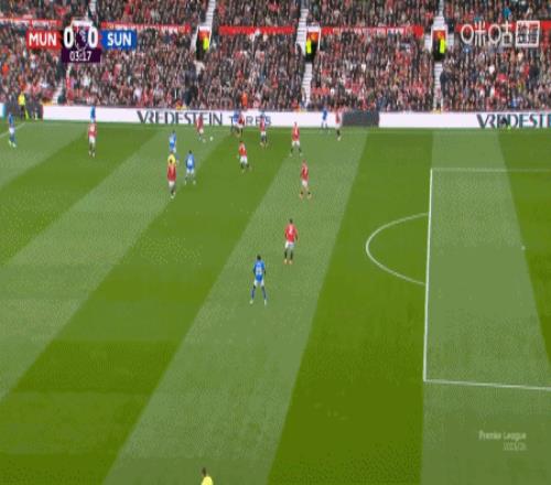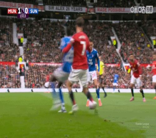 第8分钟,姆伯莫助攻,芒特凌空打门直入死角,曼联1-0领先桑德兰!