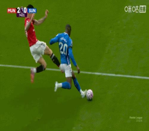 第57分钟,曼联门将拉门斯出击与特拉奥雷相撞,后者被判罚假摔染黄
