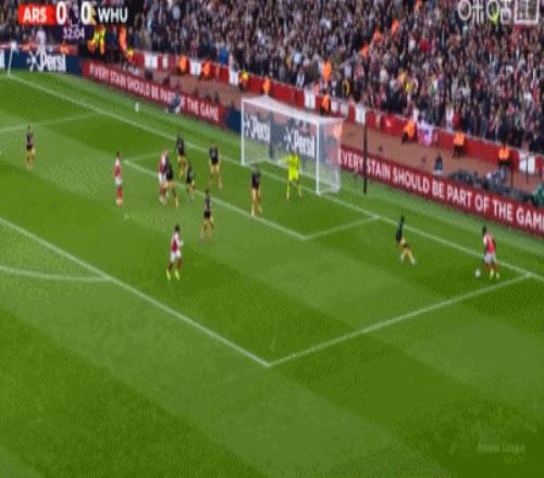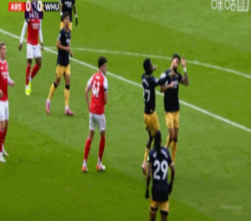 第38分钟,赖斯禁区内推射破旧主,随后选择不庆祝,阿森纳1-0西汉姆联