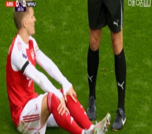 第21分钟,厄德高伸脚拦截受伤,队医上场进行治疗