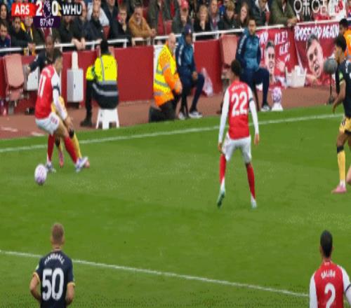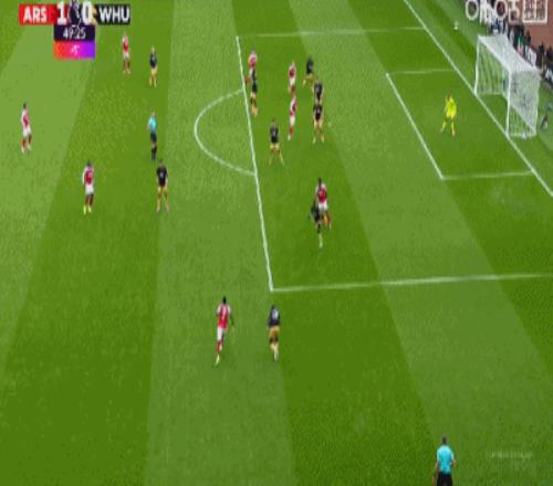 第51分钟,萨卡禁区外远射,皮球一脚踢飞