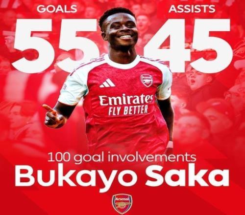萨卡完成阿森纳生涯200场英超里程碑,此前的比赛中他代表枪手在英超赛场上取得54球外加45个助攻的数据。如今,萨卡在职业生涯当中参加的第200场英超联赛的比赛,制造 了第100粒英超进球,这意味着他刚好每两场比赛就能直接参与一个进球。