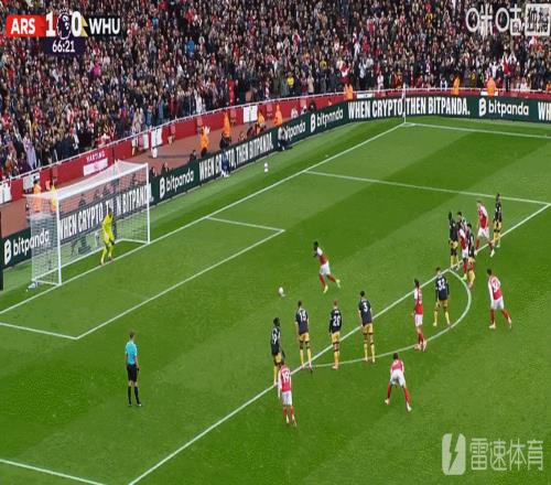 雷速体育10月4日宣 英超第7轮,阿森纳在主场对阵西汉姆联。比赛第67分钟,萨卡点射命中,将比分扩大到2-0。