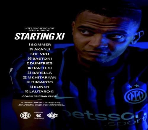 国米vs克雷莫内塞:劳塔罗领衔,博尼、巴雷拉、阿坎吉出战