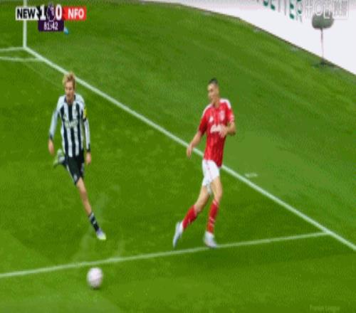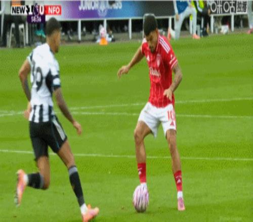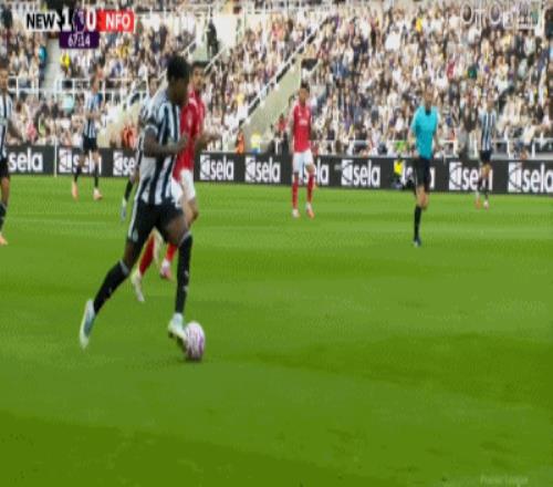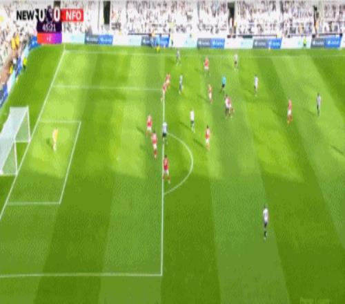 第58分钟,打破僵局,吉马良斯一脚世界波破门,纽卡1-0诺丁汉森林