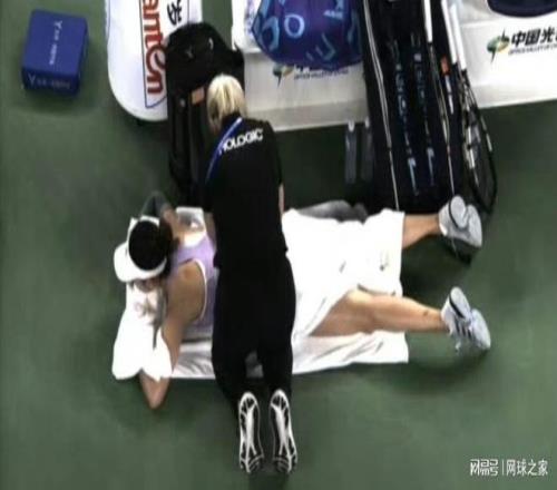 战至盘中,王欣瑜请求医疗暂停,现场医生来到场地内为她进行腰部处理和按摩。