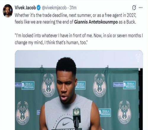 美记Vivek Jacob写道:从扬尼斯的言论来看,他身位雄鹿球员的生涯正在进入倒计时,无论是交易截止日、明年夏天还有2027年夏天,总之他将离开密尔沃基。