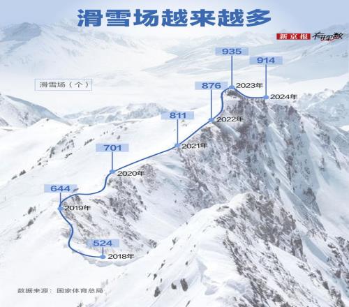 其次,遍地开花的雪场加剧了行业竞争,北京冬奥以后,越来越多企业涌入滑雪赛道,从2018年到2024年,我国滑雪场地从524增至914个,年均复合增速达9.8%,竞争压力可想而知。