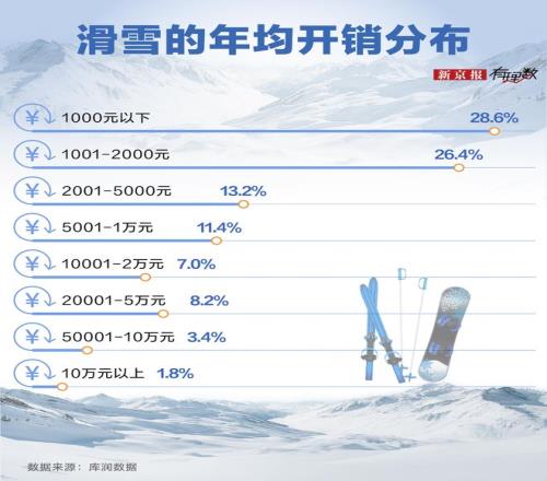 一套入门级别的雪板、雪鞋与雪服,总价约在5000元;若选择中高端装备,花费则轻松突破万元。再加上雪季卡、培训课程等相关支出,费用轻松过万。《2021滑雪圈层研究》数据显示,接近一半的核心用户每年在滑雪上的支出超过1万元。