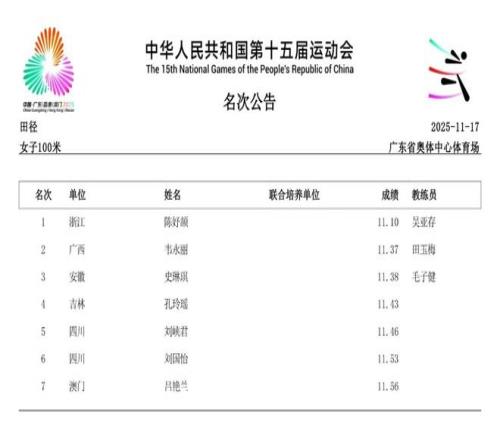 2025年11月21日,第十五届全运会将于深圳落下帷幕。在过去的数日赛程中,女子径赛项目汇集了全国顶尖短跑、中长...