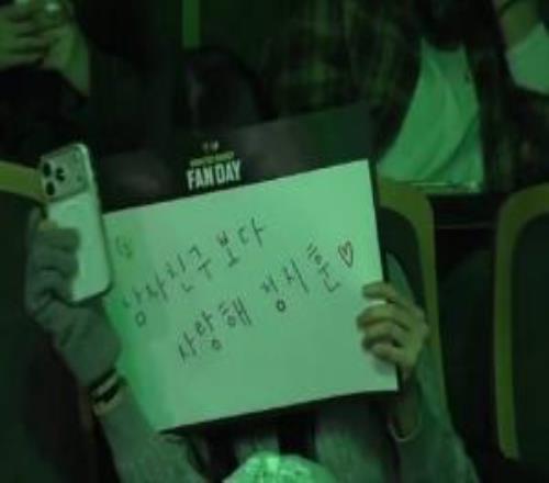 体育资讯1月3日称 GEN全员新年见面会上,观众席上一名女粉丝高举“比起男朋友我更爱你郑志勋”的应援牌!