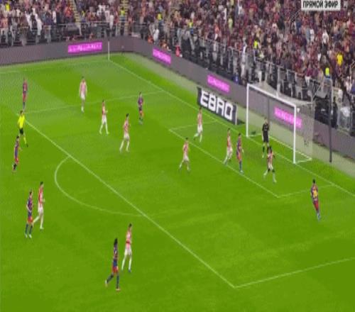 第5分钟,拉菲尼亚过掉乌奈-西蒙后传中,巴尔德吉没有顶到球